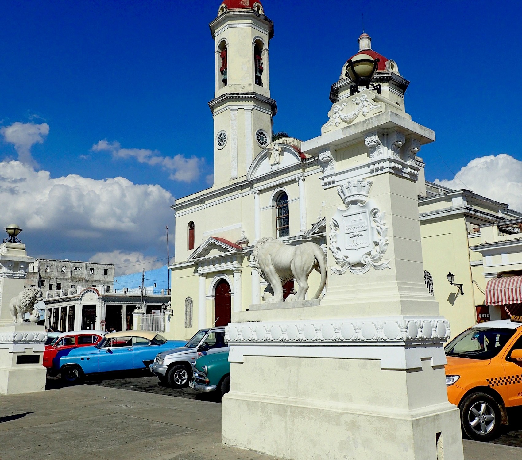 Entre temps, nous visitons le centre historique de Cienfuegos classé au patrimoine de l’UNESCO. Cette ville, fondée par des français, est connue comme la « perle du Sud ». Après un petit restaurant et un concert privé de chansons cubaines, nous flânons autour du Parc José Marti où se dressent la cathédrale de la Purisima Concepcion, le palais municipal et le théâtre Tomas Terri…